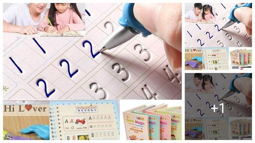 Magic Practice Copy Book for Pre-School Kids, Re-Usable Drawing, Alphabet, Numbers and Math Exercise , English Magic Book for Children (4 book +10 rifil +1 pen + 1 gripholder)