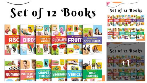Picture Book Collections for Eary Learning (Set of 12) - My Book of ABC, Numbers, Colours & Shapes, Flowers, Fruits, Vegetable, Birds, Domestic animals, Wild Animals, Parts of Body, Good Habits