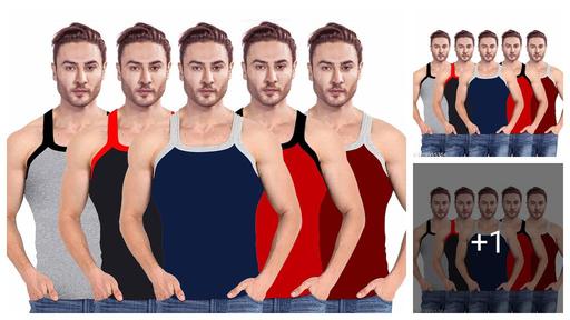 Men Combed Cotton Round Neck Vest -Pack of 5- Colour May Vary