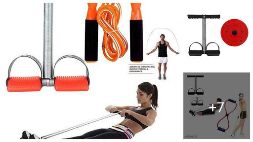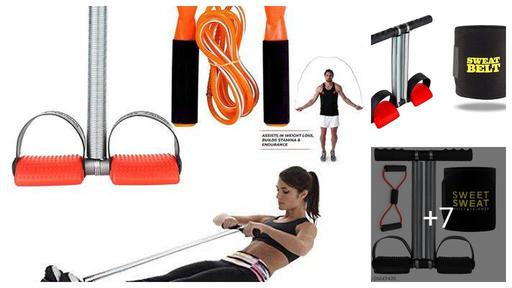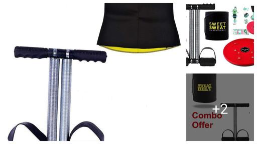 Happy Glory Double Spring Tummy Trimmer Combo with Sweat Belt & Toning Tube Resistance Band Abdominal Gym Accessories Fat Buster Exerciser Abs Workout Equipment for Men & Women