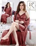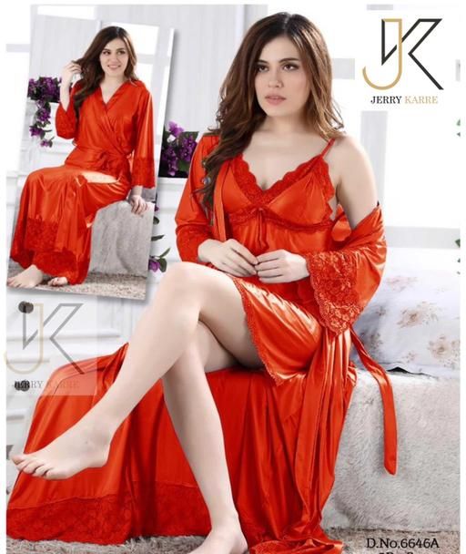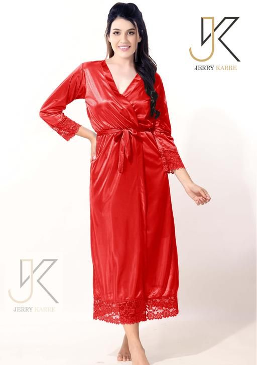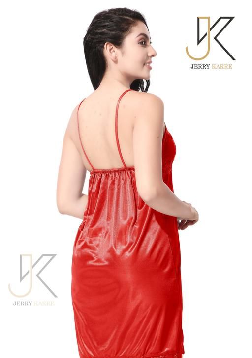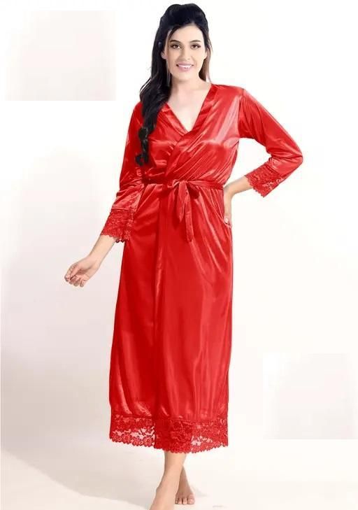 Name: Jerry Nightwear Fancy two Piece Satin silky stylish Nighty with robe for Women (Red)