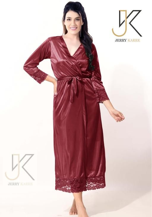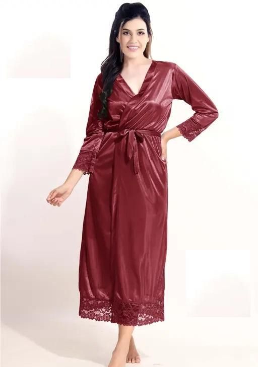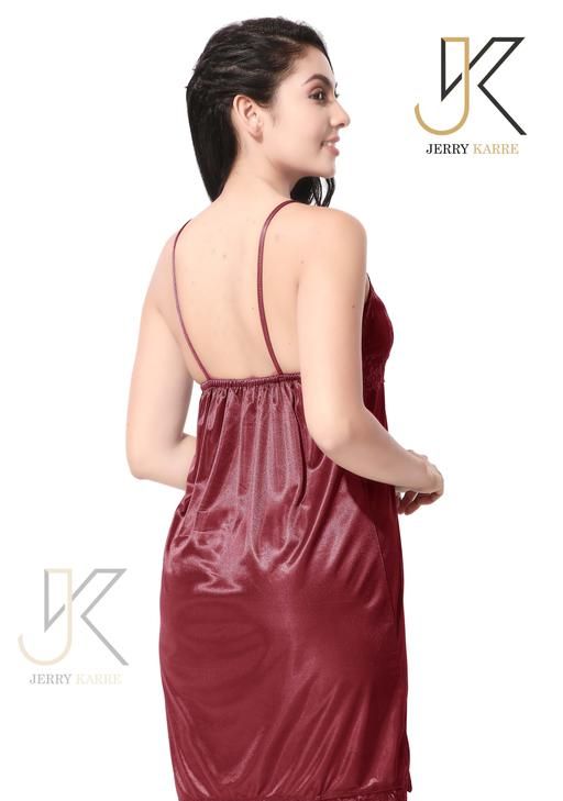 Name: Jerry Nightwear Fancy two Piece Satin silky stylish Nighty with robe for Women (Maroon)