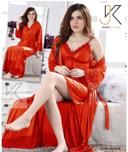 Jerry Nightwear Fancy two Piece Satin silky stylish Nighty with robe for Women (Maroon)