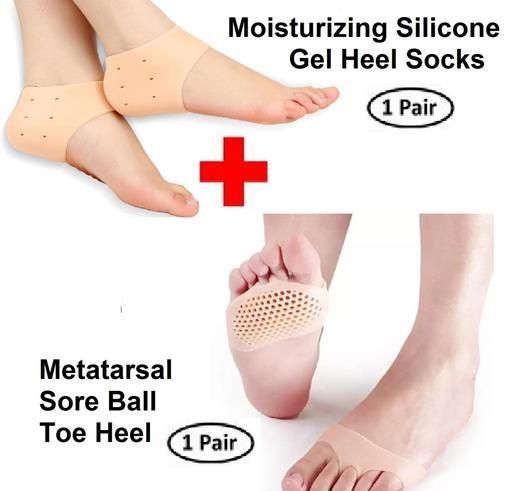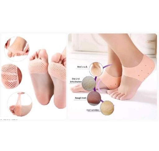 Product Name: 1 pair of Anti Crack Silicone Foot Protector Moisturizing Socks and 1 pair of Silicone Gel Half Toe Sleeve Anti-Skid Forefoot Soft Padsfor Pain Relief heel (1 + 1 pair)