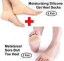 1 pair of Anti Crack Silicone Foot Protector Moisturizing Socks and 1 pair of Silicone Gel Half Toe Sleeve Anti-Skid Forefoot Soft Padsfor Pain Relief heel (1 + 1 pair)