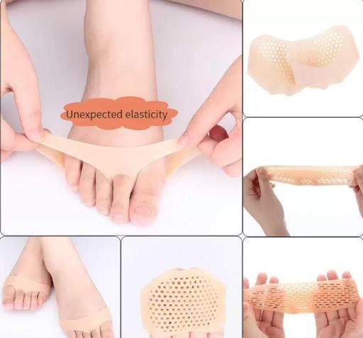 Name: Silicone Gel Heel Pad Socks + Silicone Gel Half Toe Sleeve Anti-Skid Forefoot Soft Padsfor Pain Relief (Beige, Free Size, 1 + 1 Pair)