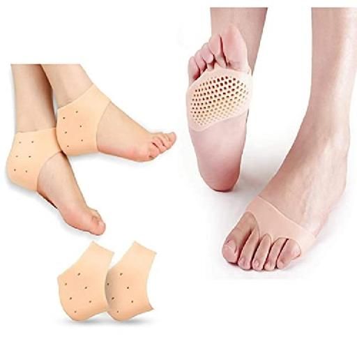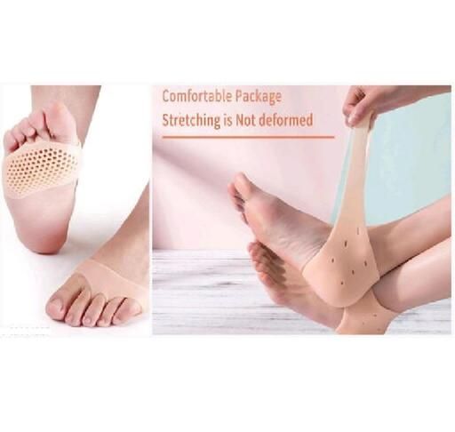 Product Name: Silicone Gel Heel Pad Socks + Silicone Gel Half Toe Sleeve Anti-Skid Forefoot Soft Padsfor Pain Relief (Beige, Free Size, 1 + 1 Pair)