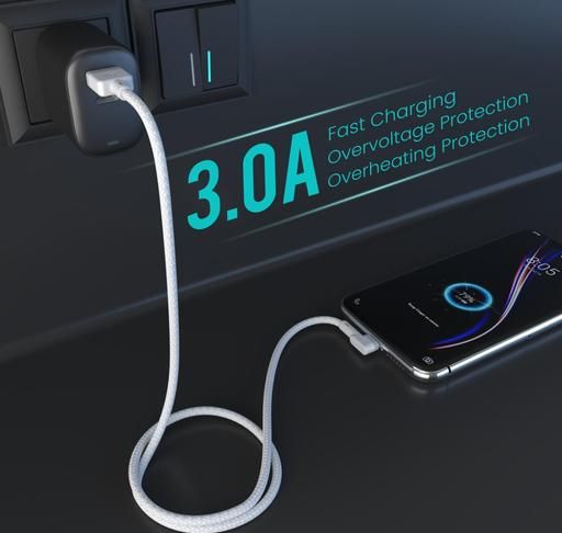 Name: Konnect L 1.2M Fast Charging 3A Micro USB Cable with Charge & Sync Function (White)