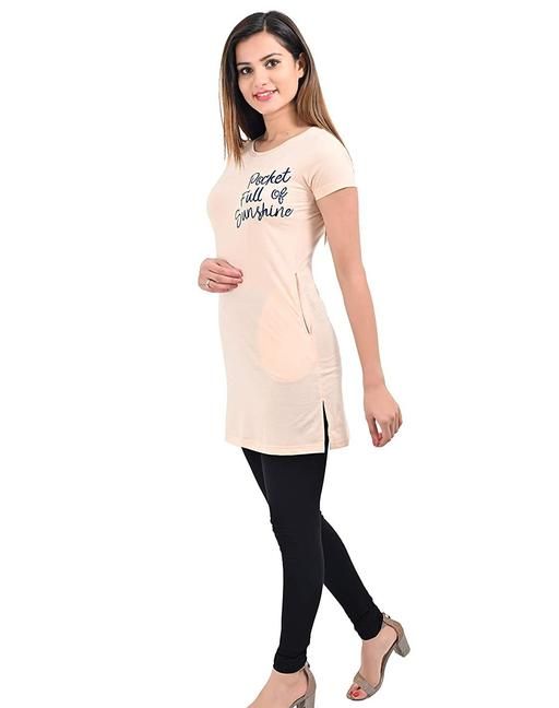 Name: Plush Womens Cotton Regular fit Printed Long Tshirt/T-Shirts (PT-001