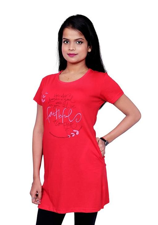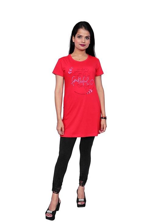 Name: Women's Cotton Printed Long Regular Fit Round Neck Top,T-Shirts (Red)|T-Shirt for women|printed t-shirt|long t-shirt|