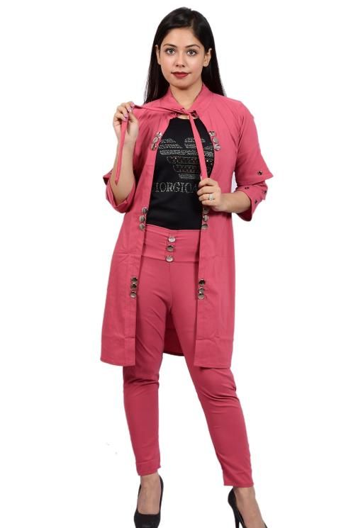 “designer top pant shrug set for women party wear”