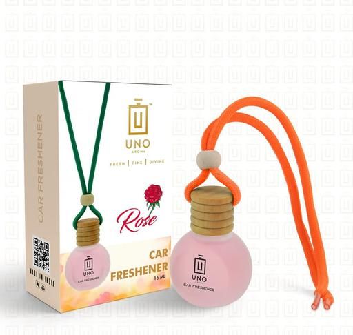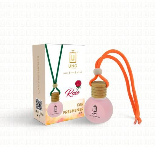 Name: UNO Aroma Car Air Freshener with Essential Oils Fragrance in Wooden Bottle with Wooden Diffuser Lid (10 ml) (Rose)