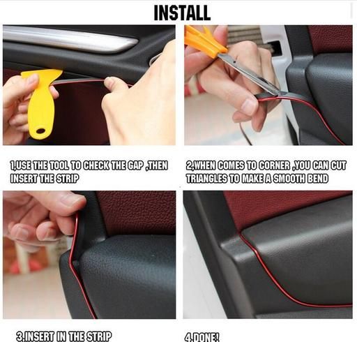 Insert type decorative strip Material: PVC Length: 5m width: approx 1mm Color: Metallic Fitment: Universal For All Cars Features: DIY Installation, just insert and press Suitable for interior & exterior decoration of your car. Flexible to bend along tight corners.