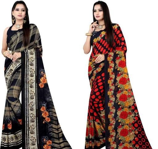Georgette Printed Daily / Party & Festive Wear Combo of 2 Stylist Fashionable Saree With Blouse pieces ( Black , Red)