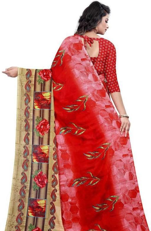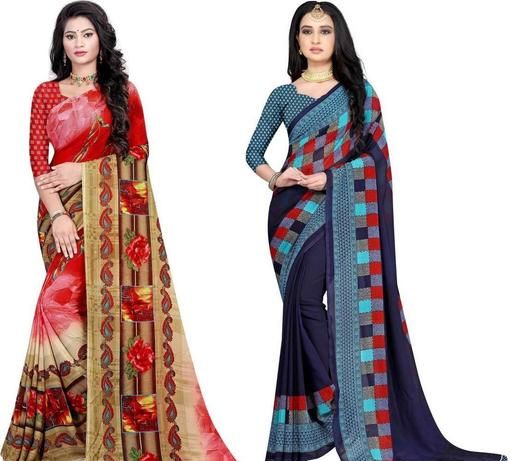 Georgette Printed Daily / Party & Festive Wear Combo of 2 Stylist Fashionable Saree With Blouse pieces ( Red , Blue )