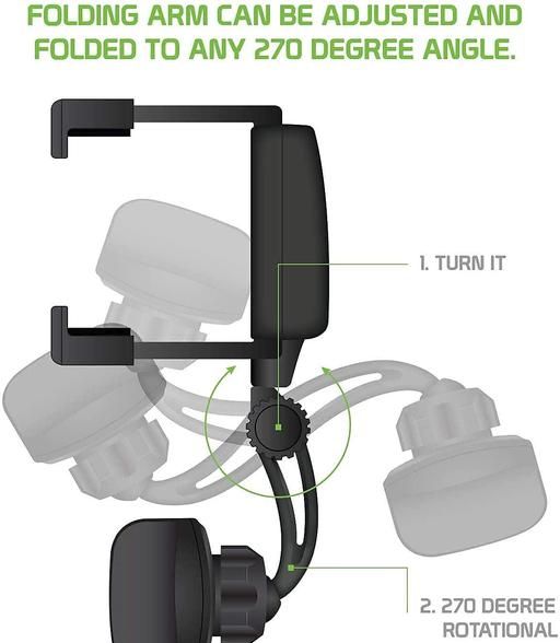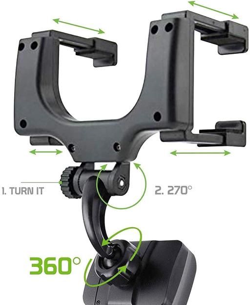 IMPORTANT NOTE : This Car Rearview Mirror Mount Holder has been specifically designed & made High Premium Quality Exactly as seen in the picture PRODUCT DESIGN : Simple, easy installation, beautiful appearance, durable, 270 degree swivel / turn base. For use on wide, suitable for All Mobile Phones Size Upto 6.5" Inch, Black PRODUCT ADJUSTABLE :The clamp is firmly screwed to the car rear view mirror, its adjustable design fits different sizes of mirrors.Extra-firm goose neck absorbs vibration, providing a stable viewing environment. STABLE AND SECURE : Through solid, high-quality workmanship way, foam-filled contact surfaces to prevent your phone off, more stable and secure.Accompanied by strengthening the sponge on the inside to prevent wear and love machine forward drop. COMPATIBILITY : The inner side provides a strengthening sponge that prevents falls and scratches. Suitable for mobile phone , smart phone , PDA , MP3 , MP4 devices which width between 40mm-80mm.