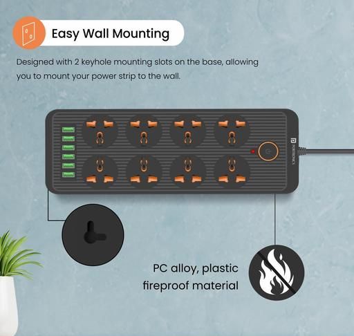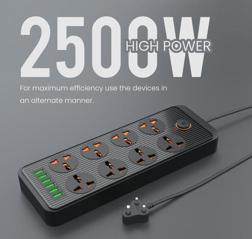 A power board that does it all! Seems like a tough nut to crack, doesn't it! But, not anymore you have all your power converter issues solved that too on one board. This gets better as the power board has not only power sockets but USB ports too. The power plate series has been formulated to give multi-tasking a complete revamp. The earlier models have made a significant impact on our consumers for their unique aspects and on the same note Power Plate 7 has been modelled. The power board is a 2500W enabled power converter that allows multiple devices to plug in at the same time. The power board has about 8 power sockets and 6 USB ports. Besides the total output of the USB ports is 2.1A and is a top notch output for similar devices. The power board has a cord length of 3M, which makes it perfect for mobility. The power board has been fitted with intelligent imported chips that make it simply smart! To even make it better the power board has spike guard technology, which protects it from damage that are caused by over-voltage, overheating and short circuit. The Power Plate 7 has been made out of eco-friendly material to ensure that it doesn't add up to the already existing e-waste. If you have a ton of devices to plug in at the same time, no worries, you can do that pretty efficiently! Add this power beast to your collection of smart gadgets and make life simply smart! [8 POWER S