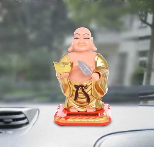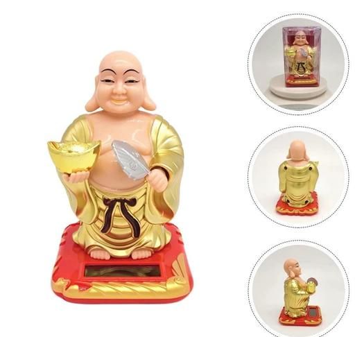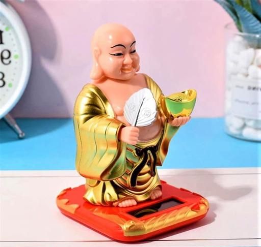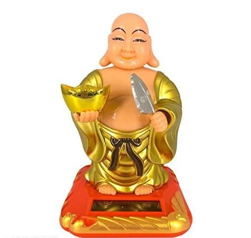 Name: PAYSTORE Polyresin Elegant Lifestyle Solar Laughing Buddha with Holding Ingot and Waving Fan Moving Head (Multicolour, 10 x 7 x 6 cm, Medium) showpiece