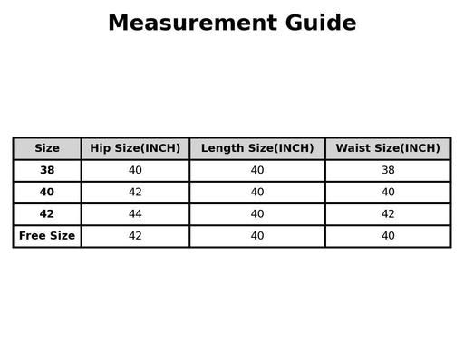 44, Free Size (Waist Size: 40 in, Length Size: 40 in, Hip Size: 42 in)