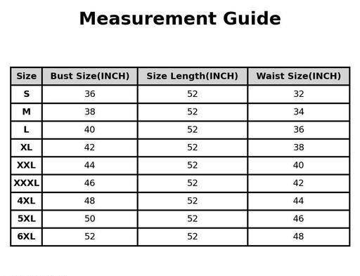 6XL (Bust Size: 52 in, Size Length: 52 in)