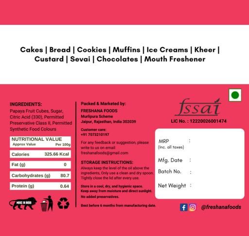 Freshana Tutti Frutti Papaya Cherry, Multicolour, 200g Topping, icing for Cakes, Breads, Its fresh, organic fruit cherry for making your food more delicious and mouth watering. TUTTI FRUTTI USES Cakes Bread Cookies Muffins Ice Cream Kheer Custard Chocolates