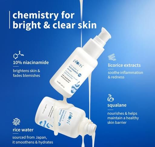 Product Name: Plum 10% Niacinamide Serum with Rice Water | Serum for Face | Vitamin B3 with Japanese Fermented Rice Water | For Clear, Blemish-Free, Bright Skin | Suits All Skin Types | Fragrance-Free | 15 ml