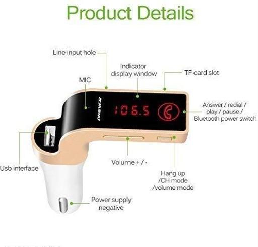 Name: Car G7 LCD Bluetooth Car Charger FM Kit MP3 Transmitter USB and TF Card Slot with in Built Mic Hands-Free Calling for All Android and iOS Devices (Colour May Vary)