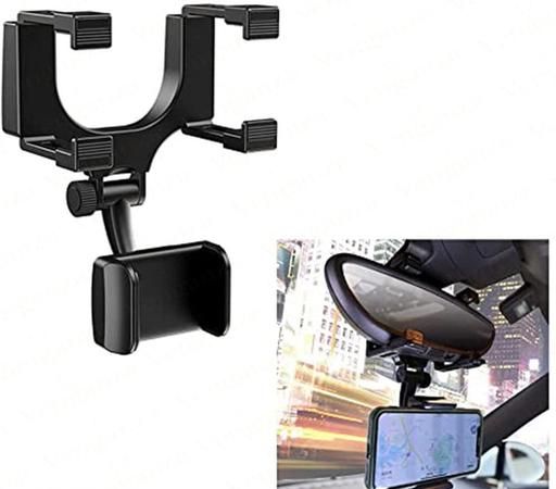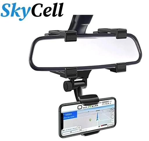 Name: SkyCell Car Mobile Holder- Rearview Mirror Phone Holder- Car Phone Mount- Phone Bracket, Phone Stand with 270� Swivel and Adjustable Clips, Universal Smartphone Cradle (Black)