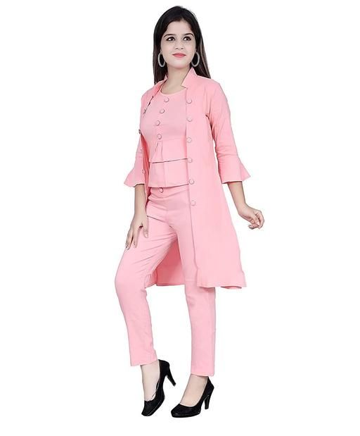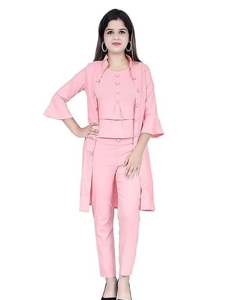 Name: MYKUKI Cotton Tops and Bottom 3 Piece Set of peach Jumpsuit with Shrug,Top and Pant for Women and Girl