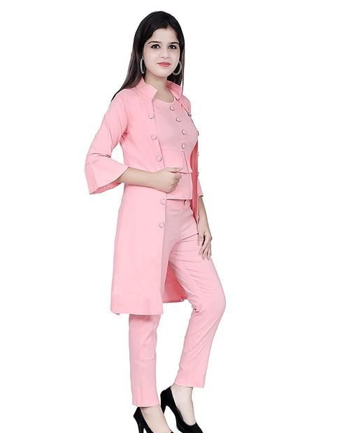 MYKUKI Cotton Tops and Bottom 3 Piece Set of peach Jumpsuit with Shrug,Top and Pant for Women and Girl