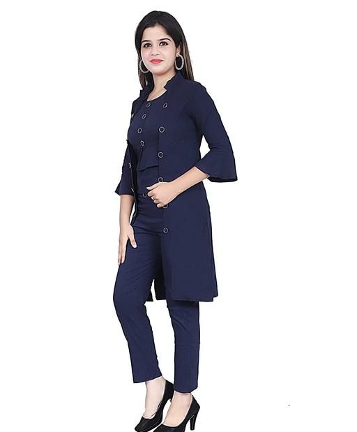 Name: MYKUKI Cotton Tops and Bottom 3 Piece Set of navy blue Jumpsuit with Shrug,Top and Pant for Women and Girl