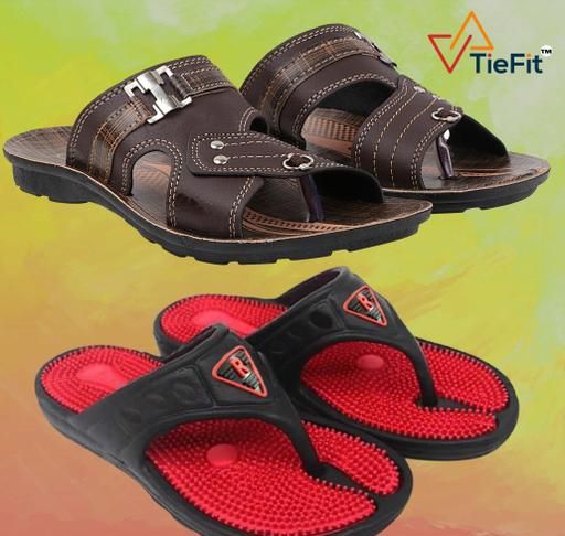 Name: TieFit Men's Accupressure Non-Slip Slippers & TieFit Men's Thong Slipper Combo Pair Of 2