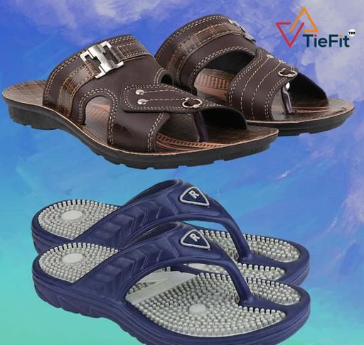 Name: TieFit Men's Accupressure Non-Slip Slippers & TieFit Men's Thong Slipper Combo Pair Of 2
