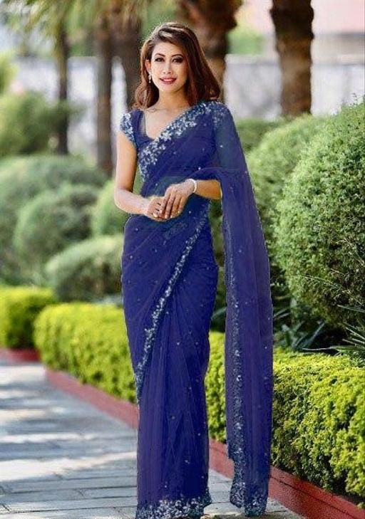 Name: hazaar butti Net Blue Embroidered Saree With Blouse