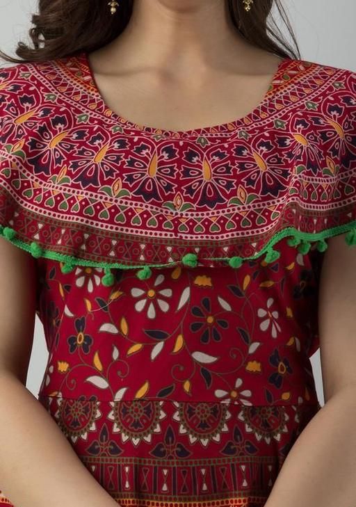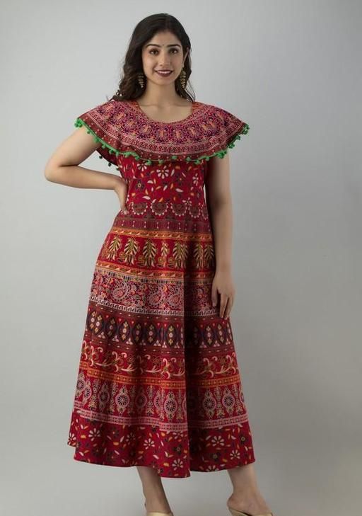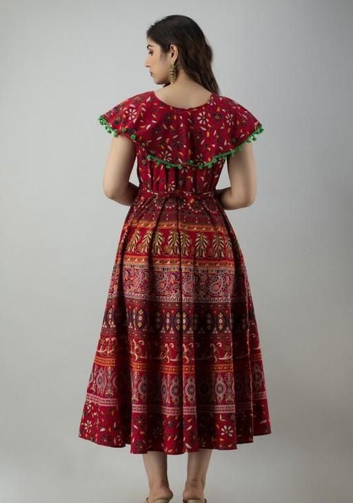 Name: Stylish Cotton Printed Anarkali Dress with Pom Poms