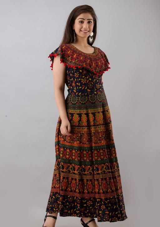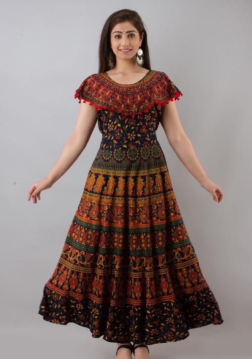 Sales Package Includes: 1 Gown, Pattern: Ethnic Print, Style: Anarkali, Length: Maxi (49 Inches), Full Flare, Summer maxi dress for women.
