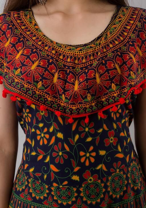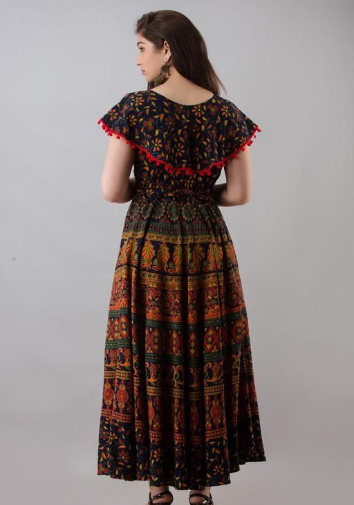 Name: Stylish Cotton Printed Anarkali Dress with Pom Poms