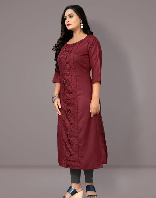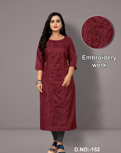 Name: Women Cotton Blend Embroidered Plus Size Kurtis