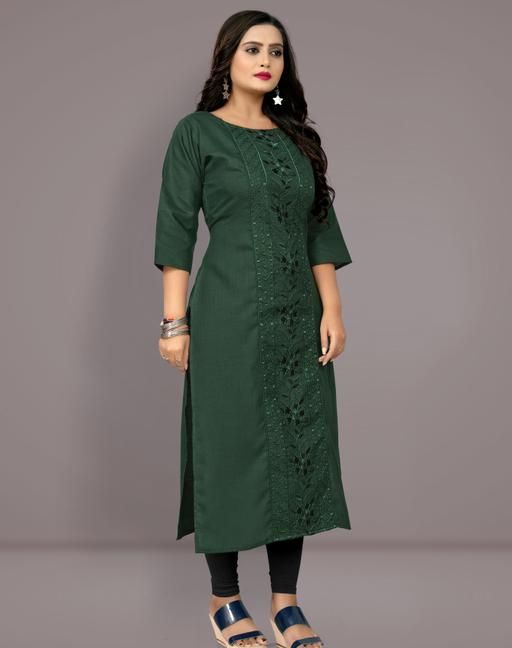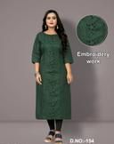 Women Cotton Blend Embroidered Plus Size Kurtis