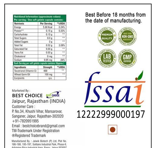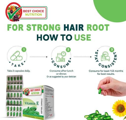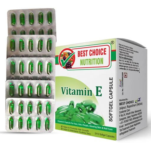 BEST CHOICE NUTRITION Vitamin E Oil Capsule FOR Face Hair Pimple Glowing Skin Nail Care (50 mg)
