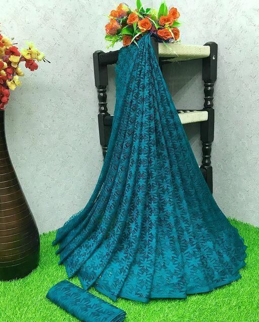 Name: Brasso Net Aqua Blue Saree With Blouse