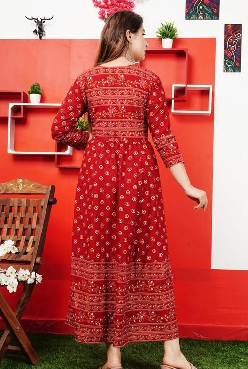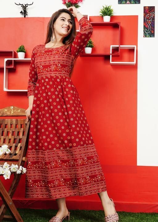 Name: Stylish Rayon Printed Maroon Anarkli kurtis For women