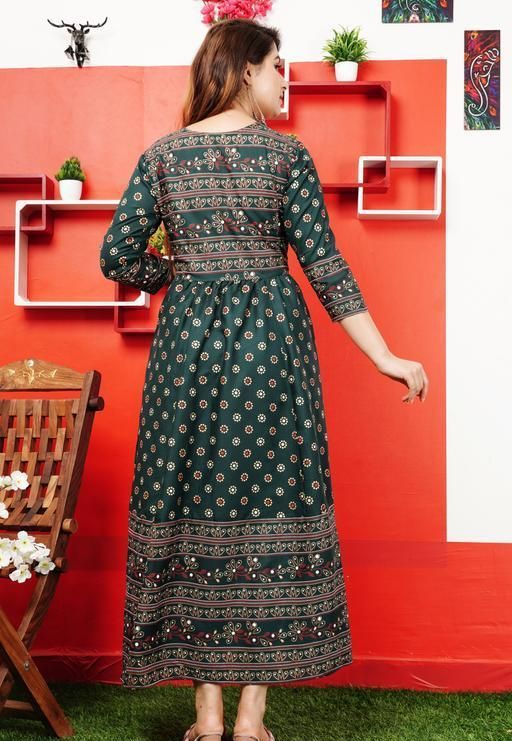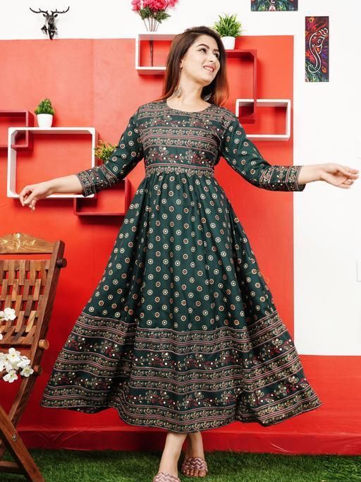 Name: Stylish Rayon Printed Dark Green Anarkli kurtis For women