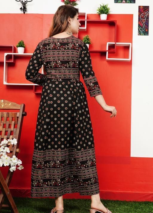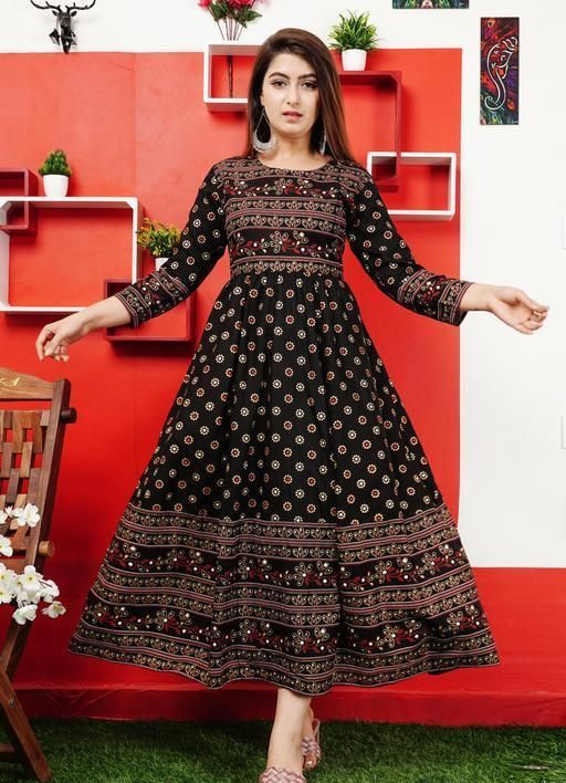 Name: Stylish Rayon Printed Black Anarkli kurtis For women