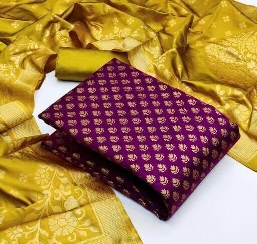 Name: Women's Purple Ethnic Motif Zari Woven Banarasi Silk Suits & Dress Materials