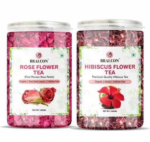 Name: BRALCON Organic Herbal Tea Combo Pack- Hibiscus Flower Tea, Rose Flower Tea- 200g (100g x 2 Pack) | Caffeine Free| Premium Hibiscus Tea Leaves |use for Iced Tea, Cocktails|Improve Digestion| Rose Tea