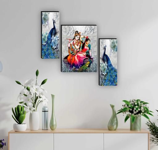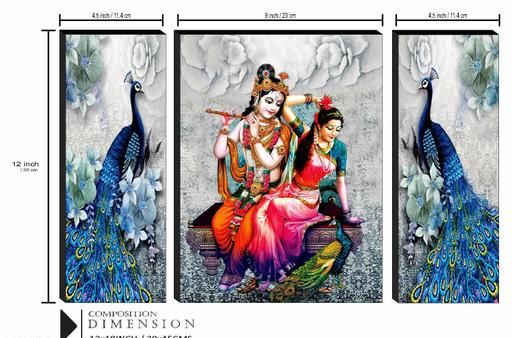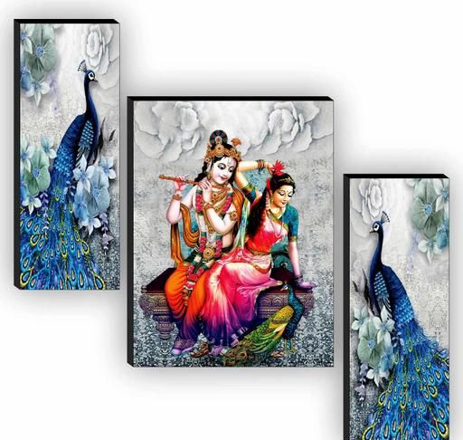 Name: SAF Set of 3 Radha Krishna with Couple Peacock UV Textured Home Decorative Gift Item Self Adeshive Painting 18 Inch X 12 Inch