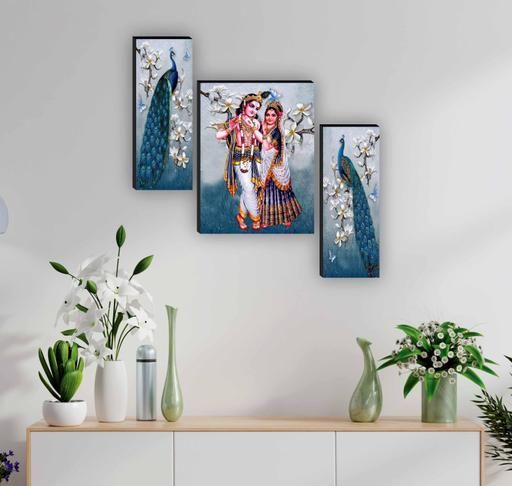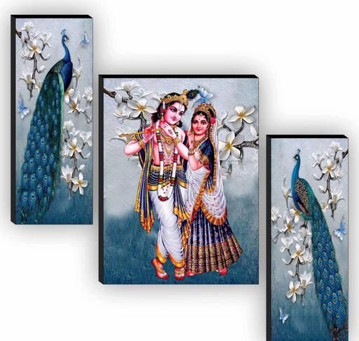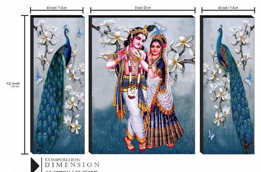 Name: SAF Set of 3 Radha Krishna with Couple Peacock UV Textured Home Decorative Gift Item Self Adeshive Painting 12 inch x 18 inch