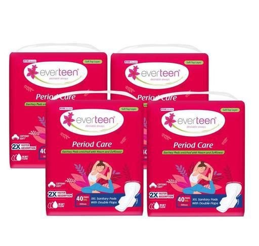 Name: Period Care XXL Soft 40 Sanitary Pads 320mm with Double Flaps enriched with Neem and Safflower - 4 Packs (40 Pads Each)