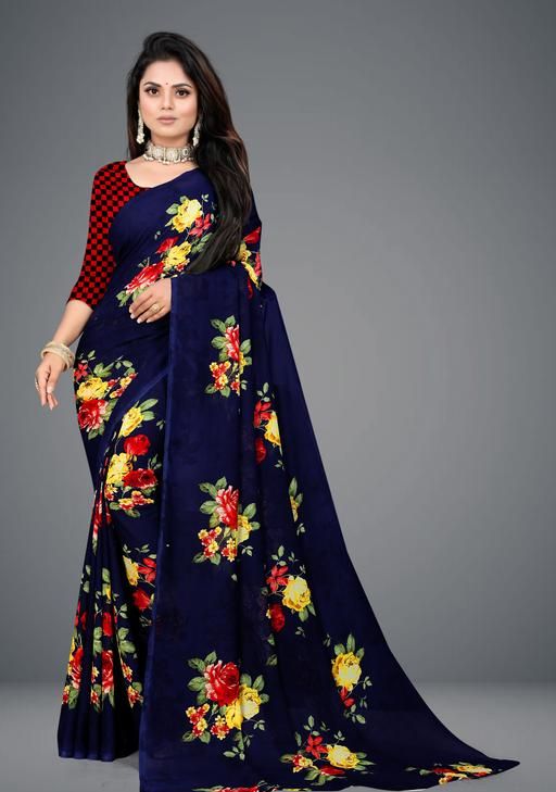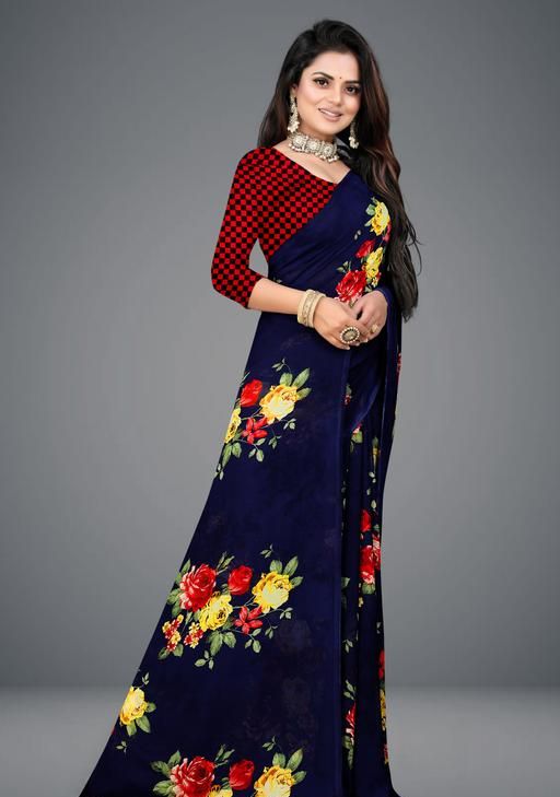 Georgette Navy Blue Saree With Blouse